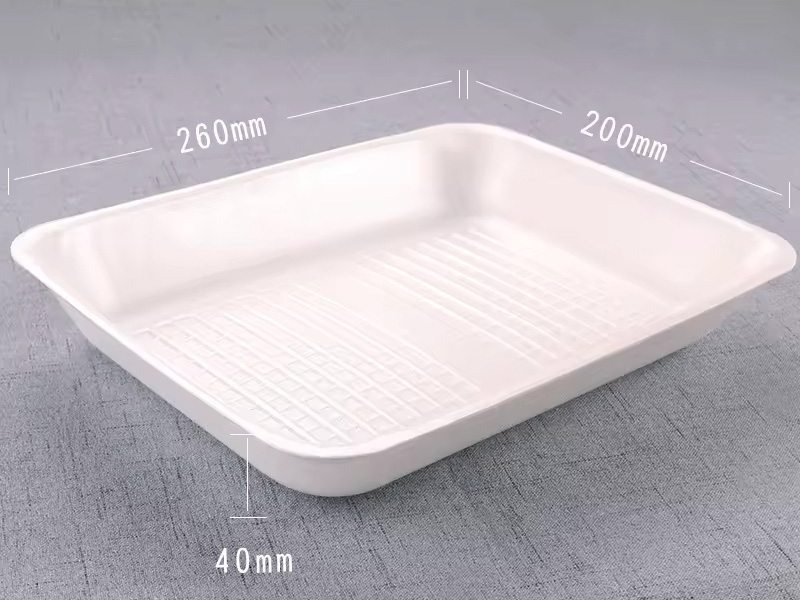 The 10.2 x 7.87 x 1.57 inch PS foam food tray is a durable and lightweight packaging solution made from high-quality polystyrene foam. It is widely utilized in supermarkets, butcher shops, and the food processing industry for the display and packaging of meat, seafood, poultry, fruits, and vegetables.