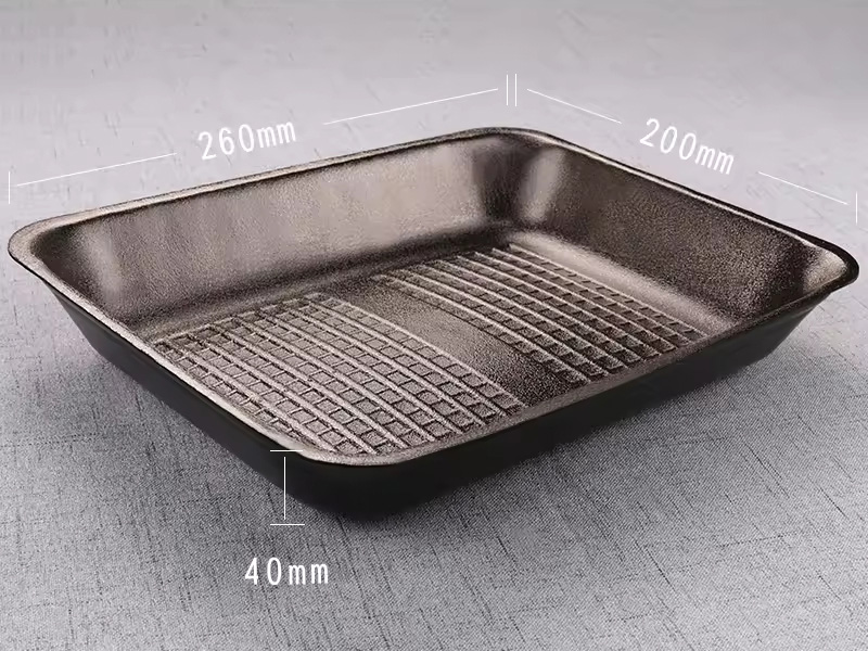 The PS foam tray is a lightweight food packaging made from polystyrene foam, used for storing, displaying, and transporting food products.