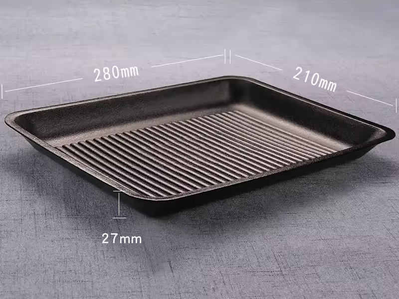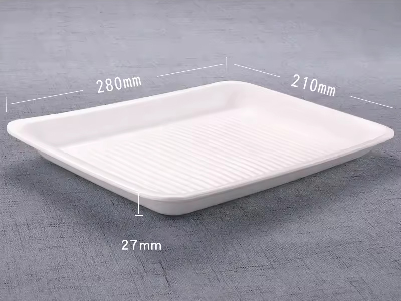 The PS foam tray is a lightweight food packaging made from polystyrene foam, used for storing, displaying, and transporting food products.