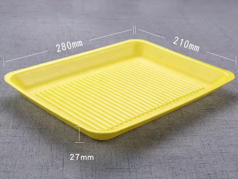 The 11.02 x 8.26 x 1.06 inch PS foam supermarket tray is a durable and lightweight packaging solution made from high-quality polystyrene foam. It is widely utilized in supermarkets, butcher shops, and the food processing industry for the display and packaging of meat, seafood, poultry, fruits, and vegetables.