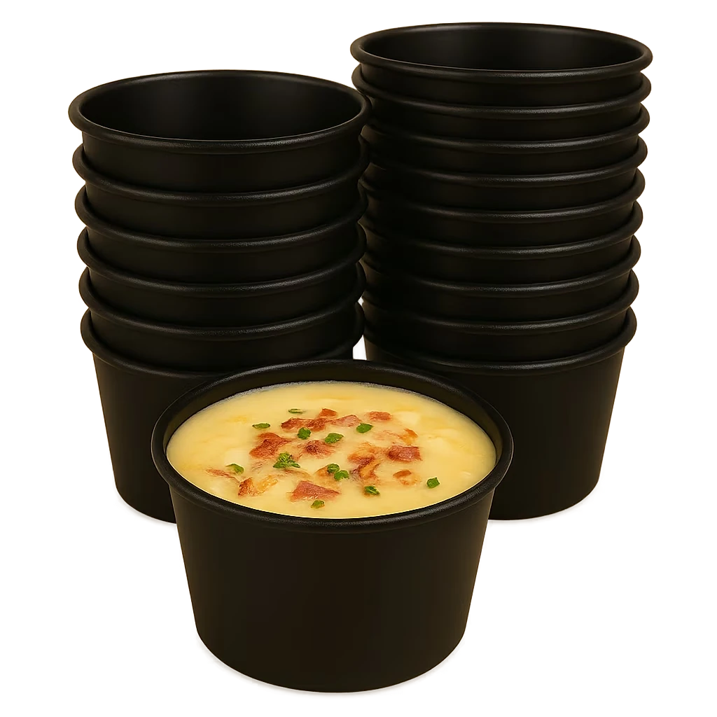 Our 101 oz black PP plastic takeout bowls are ideal for B2B clients in industries such as: