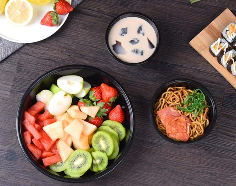 Disposable PP plastic bowls are often useful for preparing soups, rice bowls, salads, fruits, or mixed vegetables. Made from food-safe Polypropylene (PP) materials, this durable bowl is perfect for packing meals to go. These PP plastic bowls are microwave-safe, dishwasher-safe, and freezer-safe. Paired with matching lids, these bowls seal in freshness and create a barrier to help prevent leaks.
