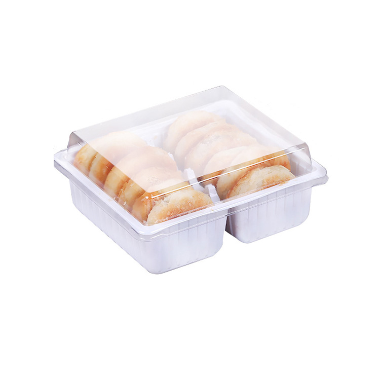 HSQY Plastic specializes in the production of high quality clear baking containers that meet the highest standards of durability, functionality and aesthetics. Our clear baking containers are made from high-quality PET plastic materials, ensuring transparency so you can easily see your delicious baked goods. Whether you're storing bread, pastries, cakes or cookies, our containers keep them fresh and looking great.